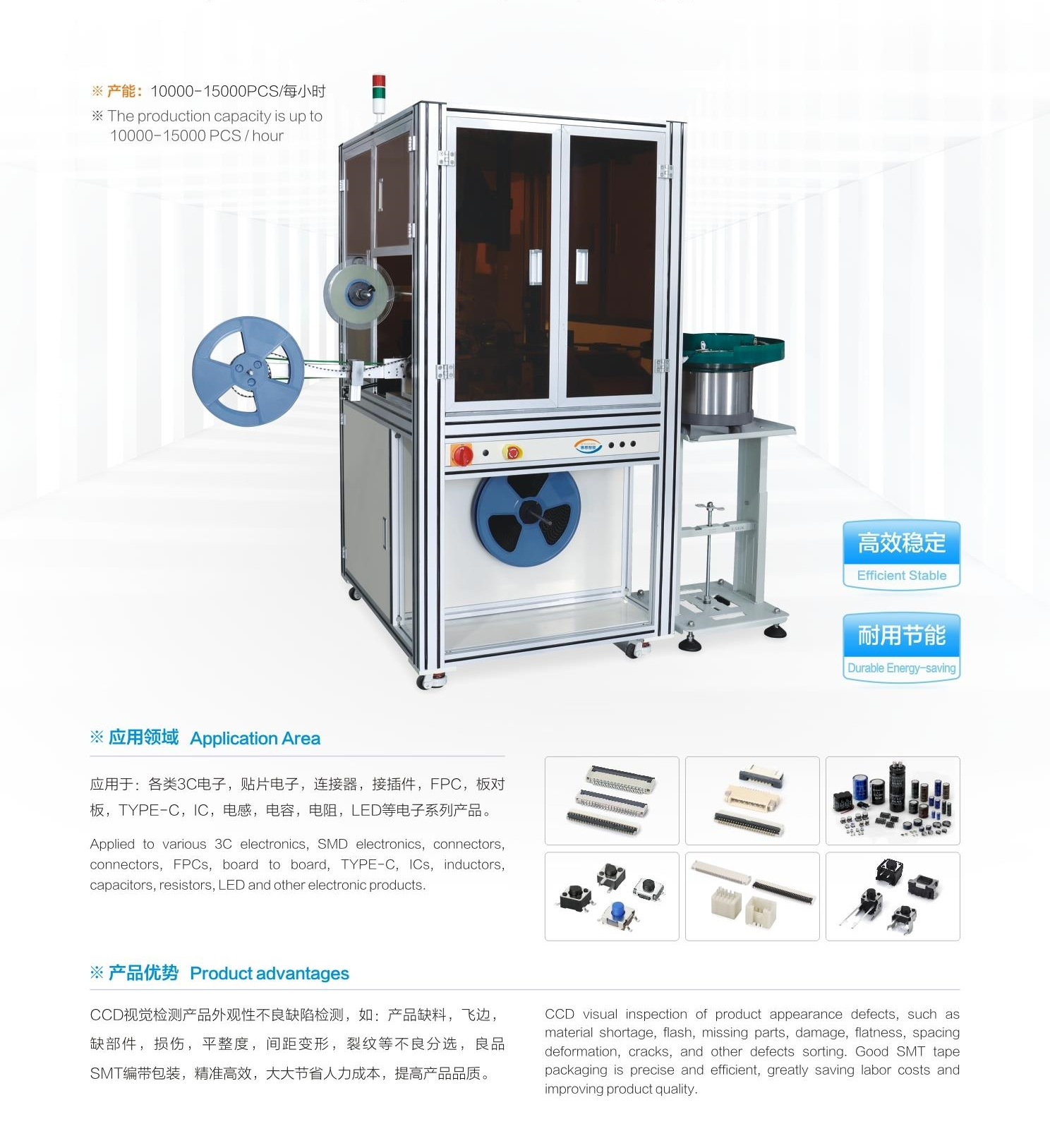 CCD光學(xué)檢測高速分選+SMT編帶包裝機
